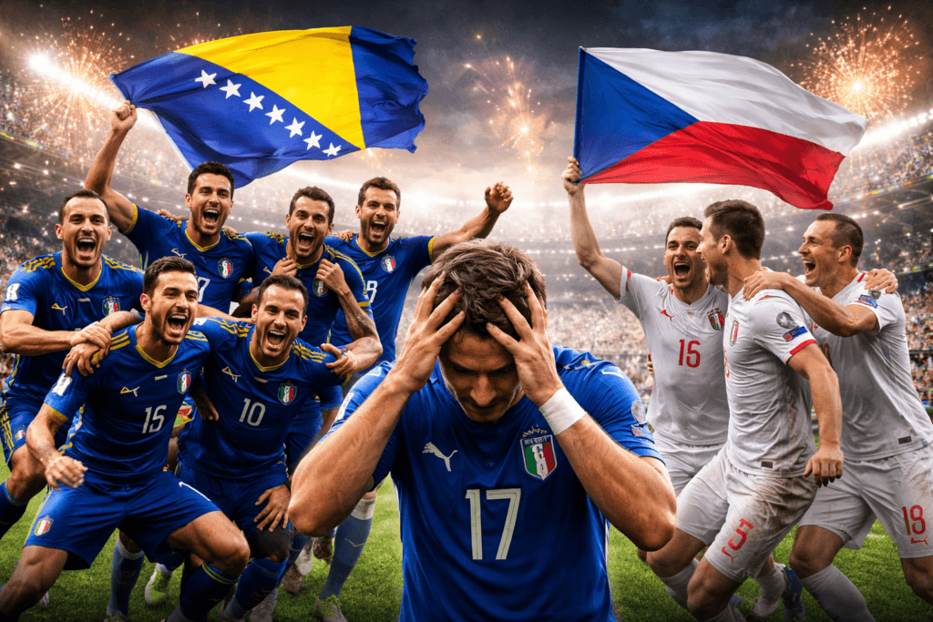 واصل منتخب منتخب إيطاليا سلسلة إخفاقاته في بلوغ نهائيات كأس العالم 2026، بعدما خسر أمام منتخب البوسنة والهرسك بركلات الترجيح (4-1)، عقب تعادل الفريقين (1-1) في الوقتين الأصلي والإضافي، خلال المواجهة التي أقيمت مساء الثلاثاء في نهائي الملحق المؤهل.