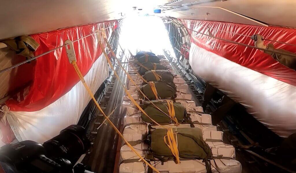 أقلعت 9 طائرات نقل عسكرية من جمهورية مصر العربية، محملة بعشرات الأطنان من المساعدات الغذائية؛ لتنفيذ أعمال الإسقاط الجوى على المناطق التى يصعب الوصول إليها براً بقطاع غزة .