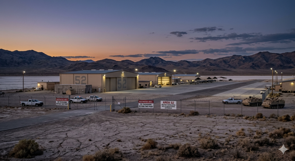 تقع كل من المنطقة 52 والمنطقة 51 داخل مجمع عسكري واسع شمال لاس فيغاس يُعرف باسم ميدان نيفادا للاختبار والتدريب، وهو موقع ارتبط لعقود طويلة بنظريات حول تجارب الطائرات العسكرية المتقدمة والأبحاث المرتبطة بالأسلحة النووية.