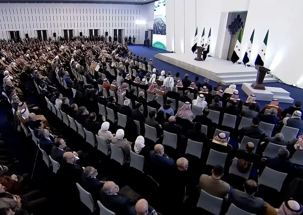 و كان الرئيس أحمد الشرع رئيس المرحلة الانتقالية شدّد في كلمته خلال افتتاح المؤتمر على وحدة سوريا ووجوب “احتكار” الدولة للسلاح، معتبرا أن ما تشهده بلاده منذ إطاحة نظام بشار الأسد يشكل عنوانا “لمرحلة تاريخية جديدة”.