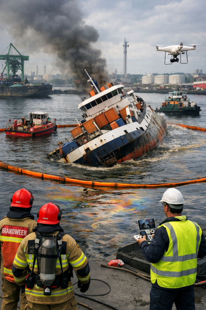 الحادث لم يتوقف عند حدود الغرق، بل تسبب أيضاً في تسرب كميات من الديزل والزيوت إلى مياه النهر، ما أثار مخاوف بيئية. وفي محاولة للسيطرة على الوضع، استخدمت فرق الإطفاء طائرات مسيّرة لرصد حجم التلوث، كما تم استدعاء سفينة متخصصة لاحتواء البقعة النفطية ومنع انتشارها.
