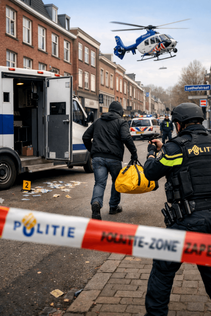 ووقعت الحادثة في تمام الساعة 15:15 بعد الظهر، حين كانت الشاحنة متوقفة في شارع Lusthofstraat، قبل أن يُقدم شخص مجهول على اقتحامها والاستيلاء على صندوق يحتوي على مبالغ مالية لم تُحدَّد قيمتها حتى الآن.