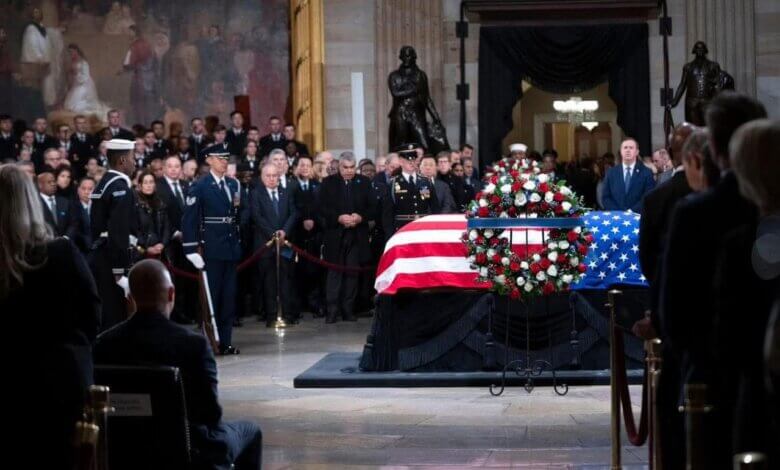 وشهدت مراسم الجنازة حضور الرئيس الأمريكي جو بايدن، والرئيس المنتخب دونالد ترامب، ورئيس وزراء كندا جاستين ترودو، وسكرتير عام الأمم المتحدة أنطونيو جوتيريش، وعدد كبير من كبار المسؤولين والسفراء المعتمدين لدى الولايات المتحدة.