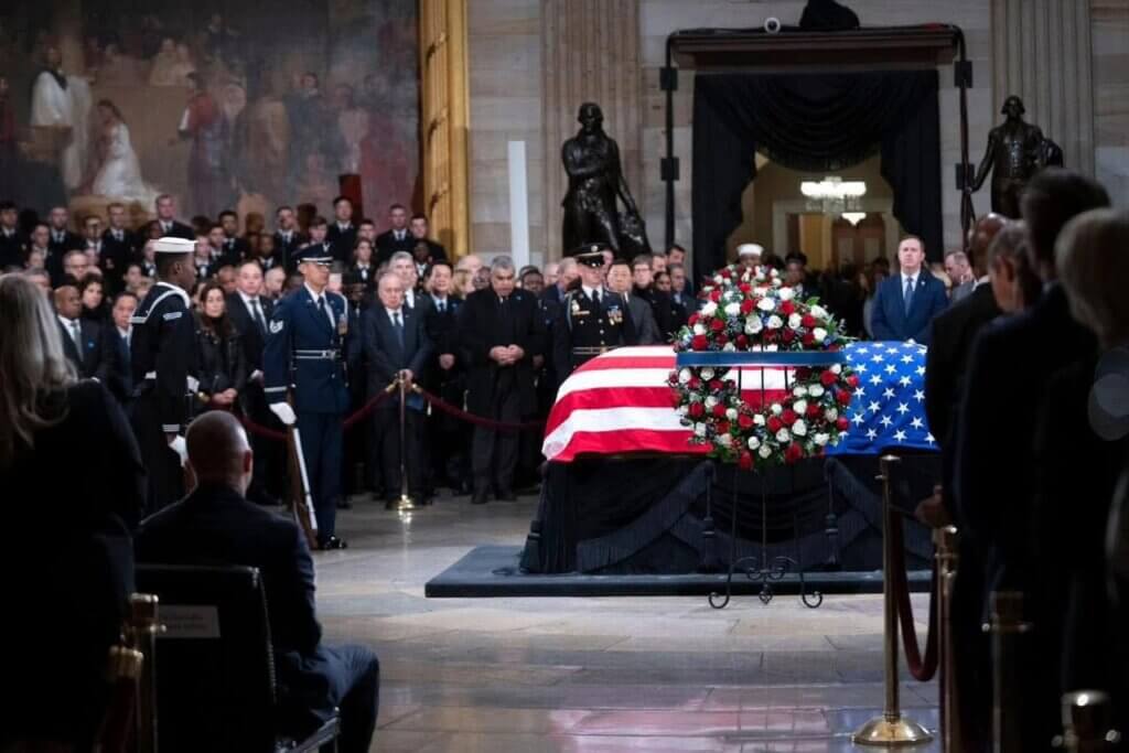 وشهدت مراسم الجنازة حضور الرئيس الأمريكي جو بايدن، والرئيس المنتخب دونالد ترامب، ورئيس وزراء كندا جاستين ترودو، وسكرتير عام الأمم المتحدة أنطونيو جوتيريش، وعدد كبير من كبار المسؤولين والسفراء المعتمدين لدى الولايات المتحدة.