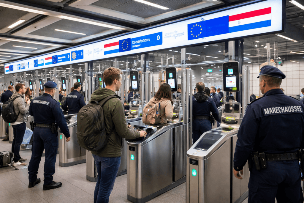 فقد شرعت السلطات الهولندية، بإشراف جهاز Koninklijke Marechaussee، في تشغيل نظام الدخول/الخروج الأوروبي (EES)، الذي يعتمد على تقنيات بيومترية حديثة لتسجيل بيانات المسافرين بدقة وسرعة غير مسبوقة.