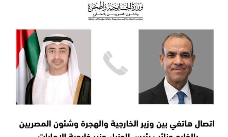 جرى اتصال هاتفي بين د. بدر عبد العاطي وزير الخارجية والهجرة المصرية، و الشيخ عبد الله بن زايد آل نهيان نائب رئيس الوزراء، وزير الخارجية الإماراتي .