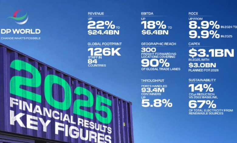 وتبلغ ميزانية النفقات الرأسمالية للمجموعة لعام 2026 نحو 3 مليارات دولار، مع التركيز على المشاريع ذات الأولوية، بما يشمل جبل علي، والأحواض الجافة العالمية، وتونا تيكرا “الهند”، ولندن غيتواي “المملكة المتحدة”، وندايان “السنغال”، وجدة “المملكة العربية السعودية”.