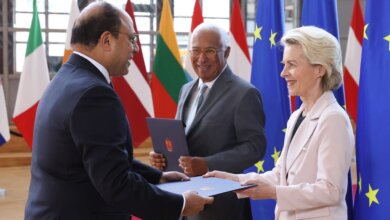 سفير مصر بالاتحاد الأوروبى يتقدم بأوراق اعتماده لرئيس المجلس الأوروبى ورئيسة مفوضية الاتحاد
