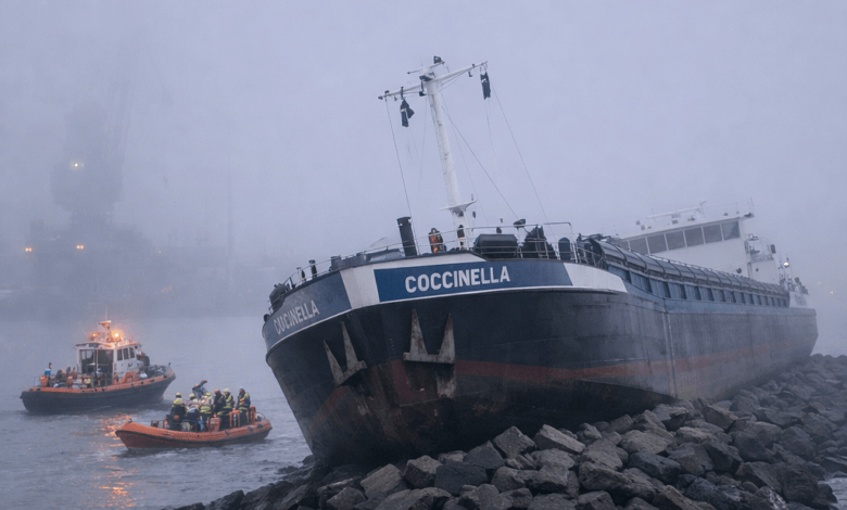 ضباب كثيف يتسبب في جنوح سفينة شحن قرب ميناء تيرنوزن الهولندي