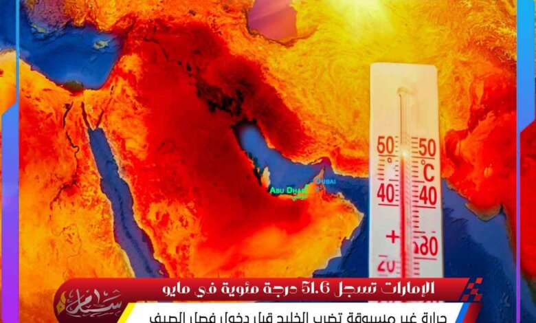 حرارة قياسية في الإمارات تتجاوز 51.6 درجة قبل دخول الصيف دبي: سام تاج الدين في تطور مناخي مثير للقلق، سجّلت…